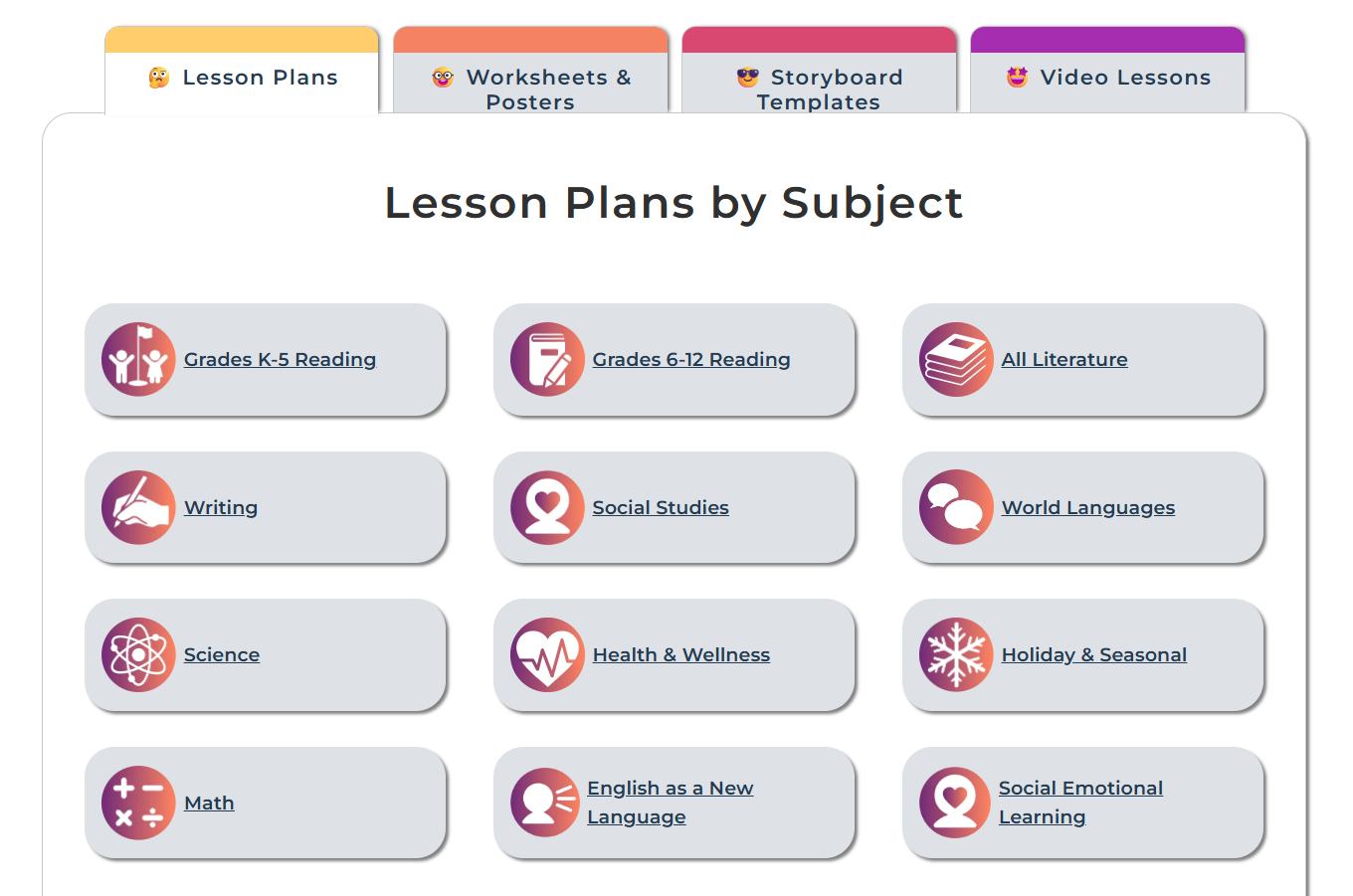 From our Teacher Resources, you can zero in on lesson plans that match your grade level and the subject you want to use Storyboard That for.