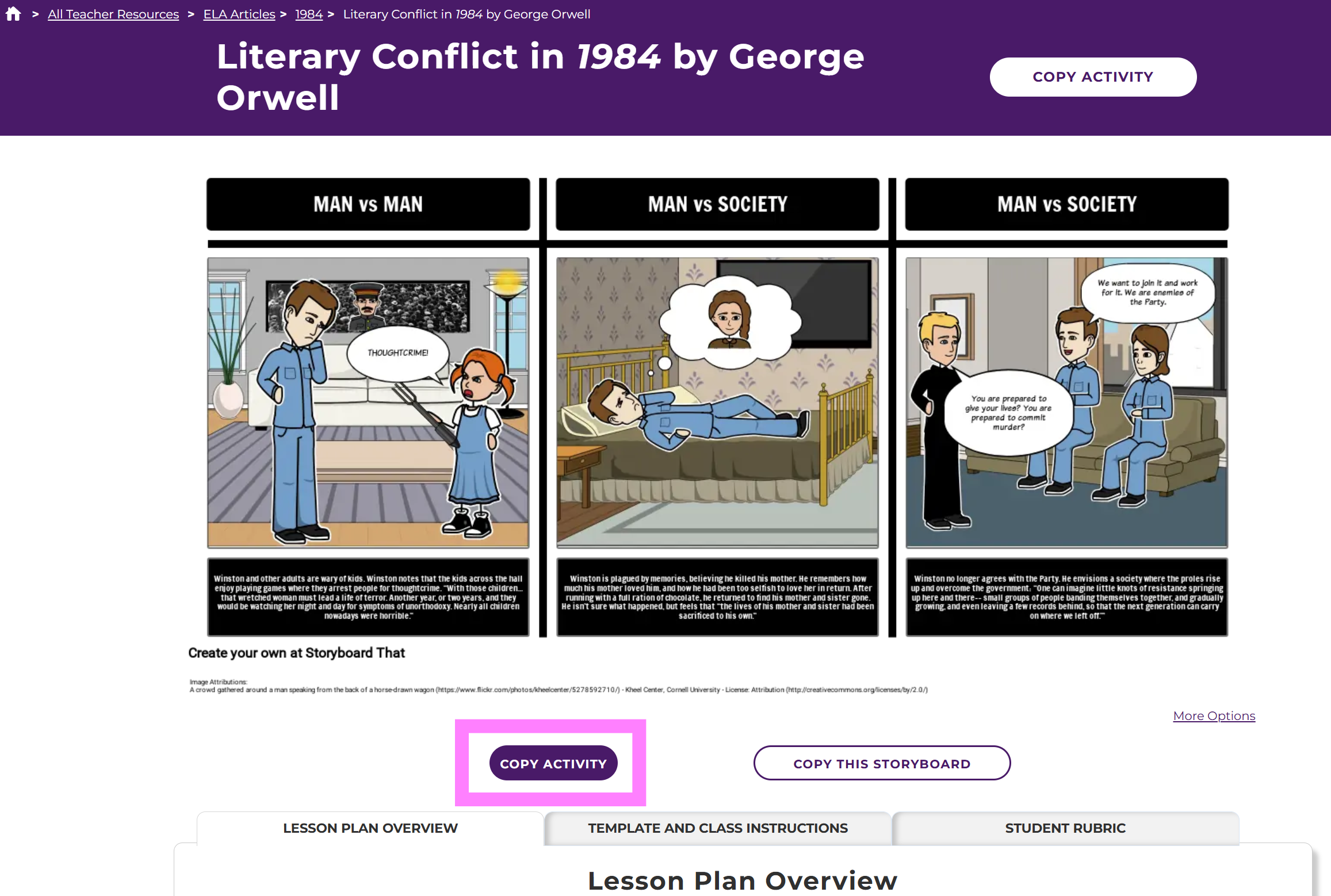Storyboard That offers tons of pre-made lesson plans and activities in Teacher Resources that you can copy to make it quick and easy to get your students started!