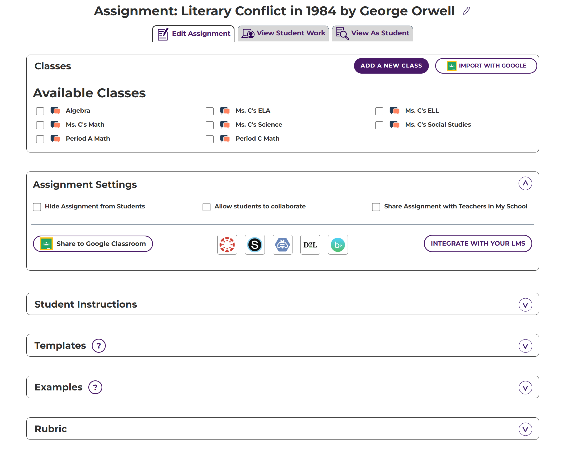 You can change any of the templates or instructions that come with the pre-made assignment using the Edit Assignment section.