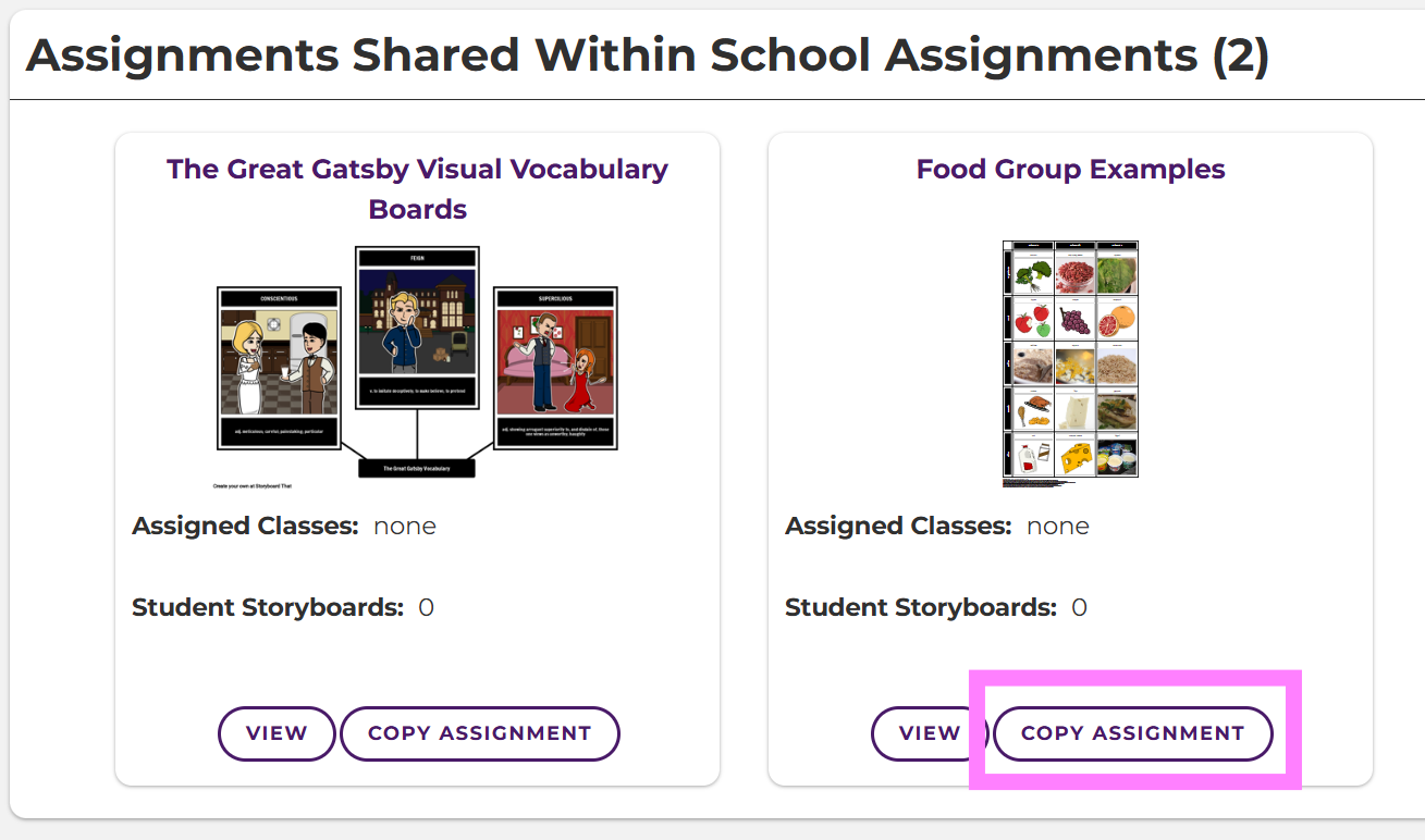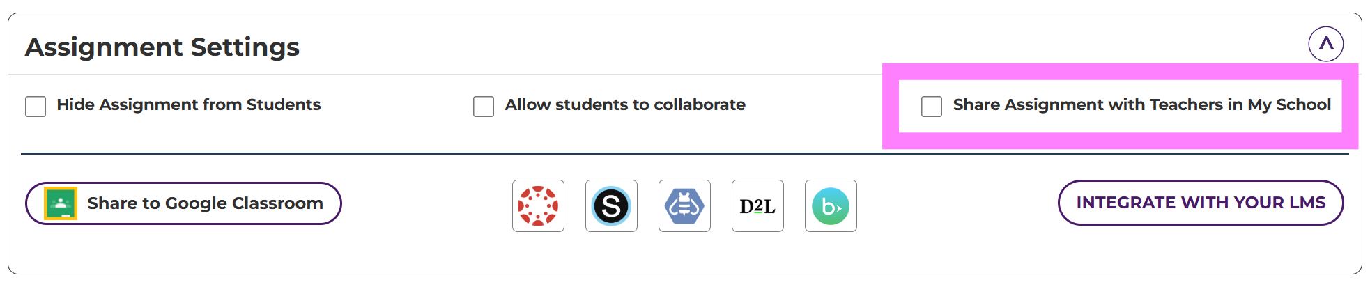 In school and district accounts, teachers can share the assignments they have made with other teachers in their account.