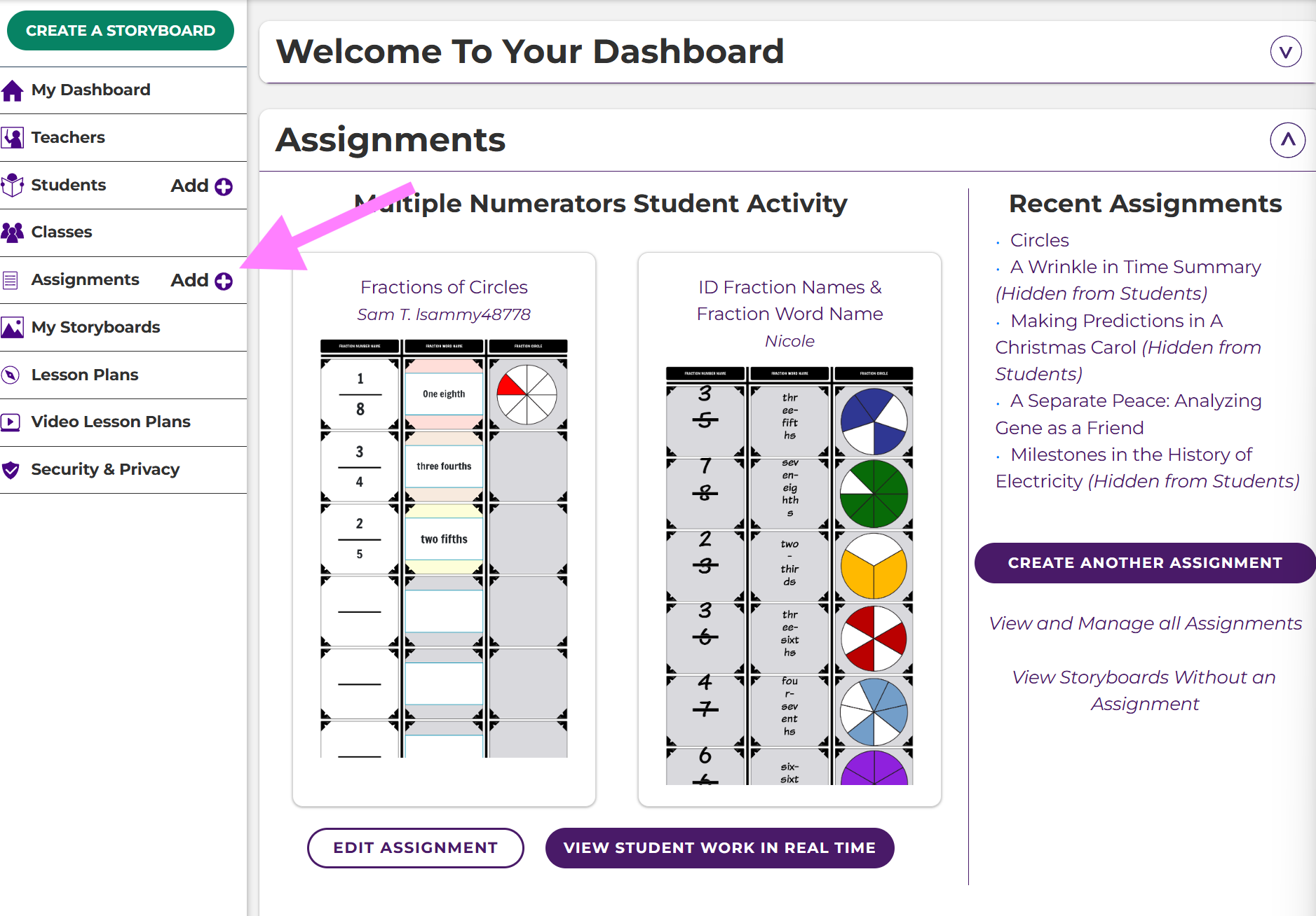 - Teachers can also see the grades of their students from the assignment dashboard.