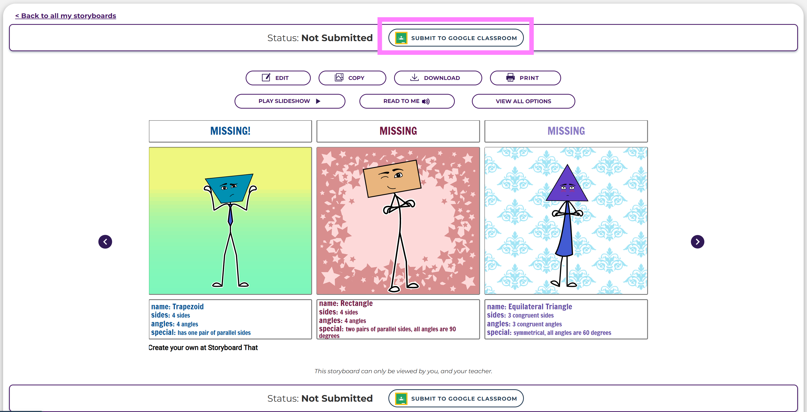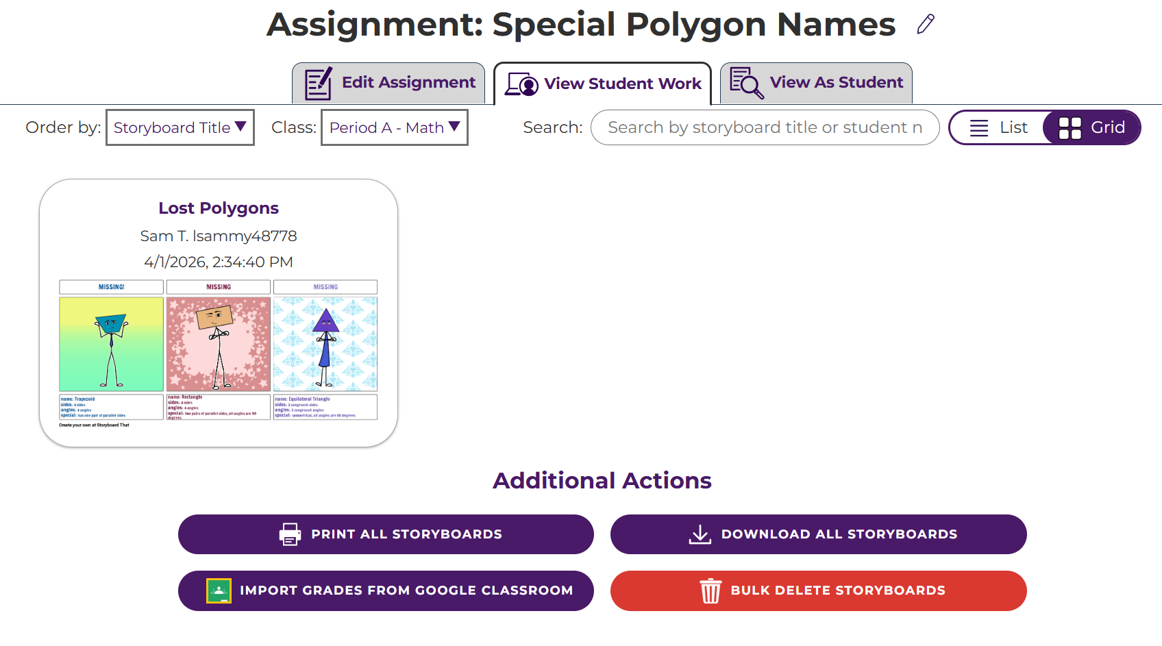 - After grading and returning the assignment, students can see their grade from Storyboard That.