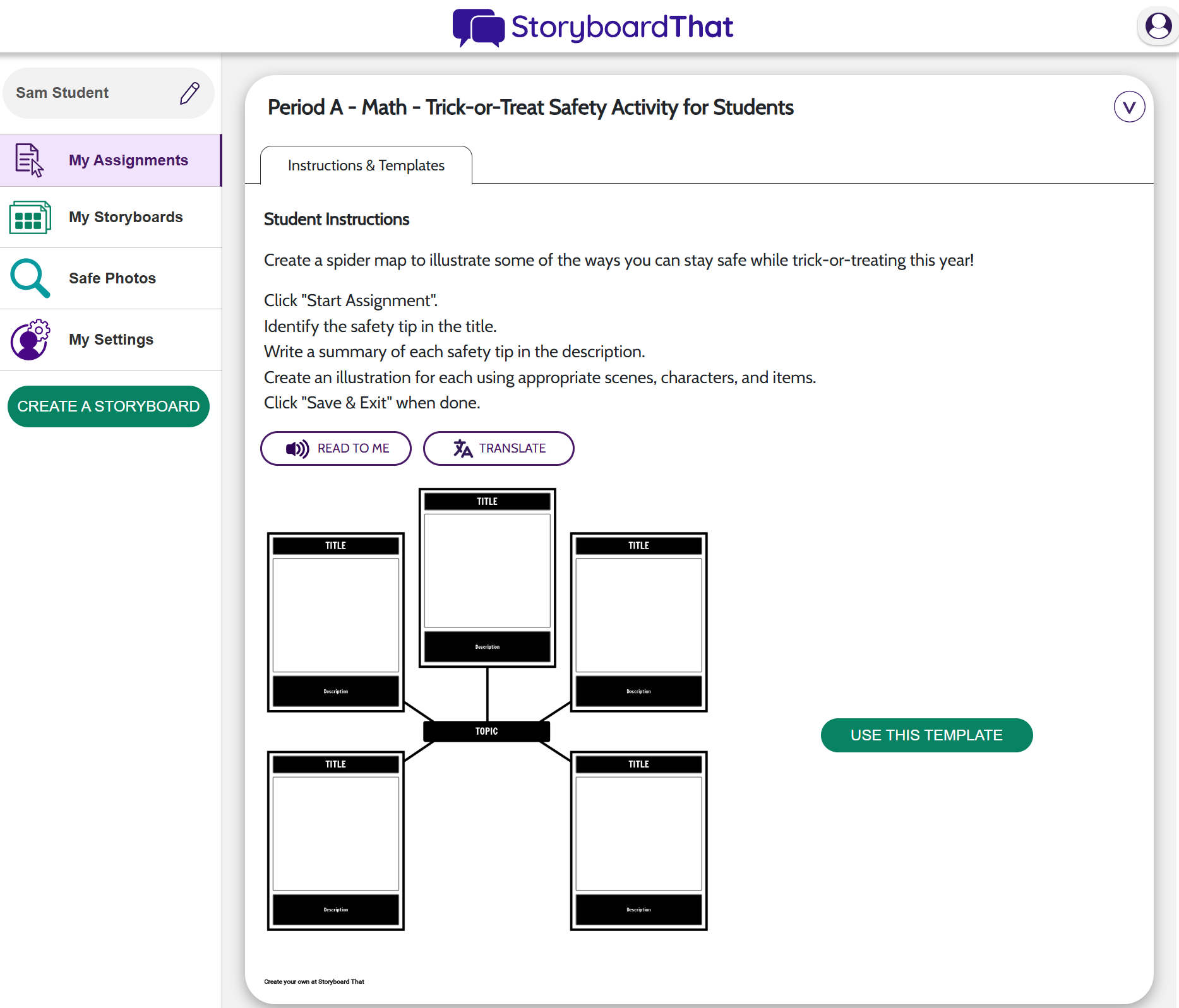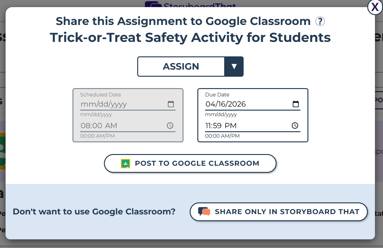 - Log in to your Storyboard That account and create an assignment.