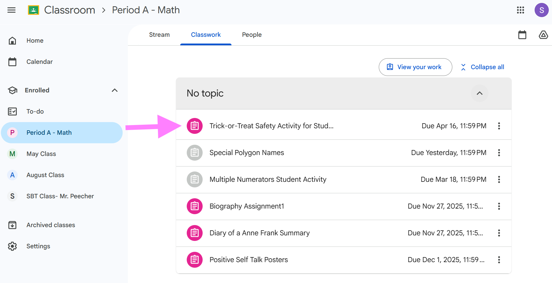 - Find the assignment in the class