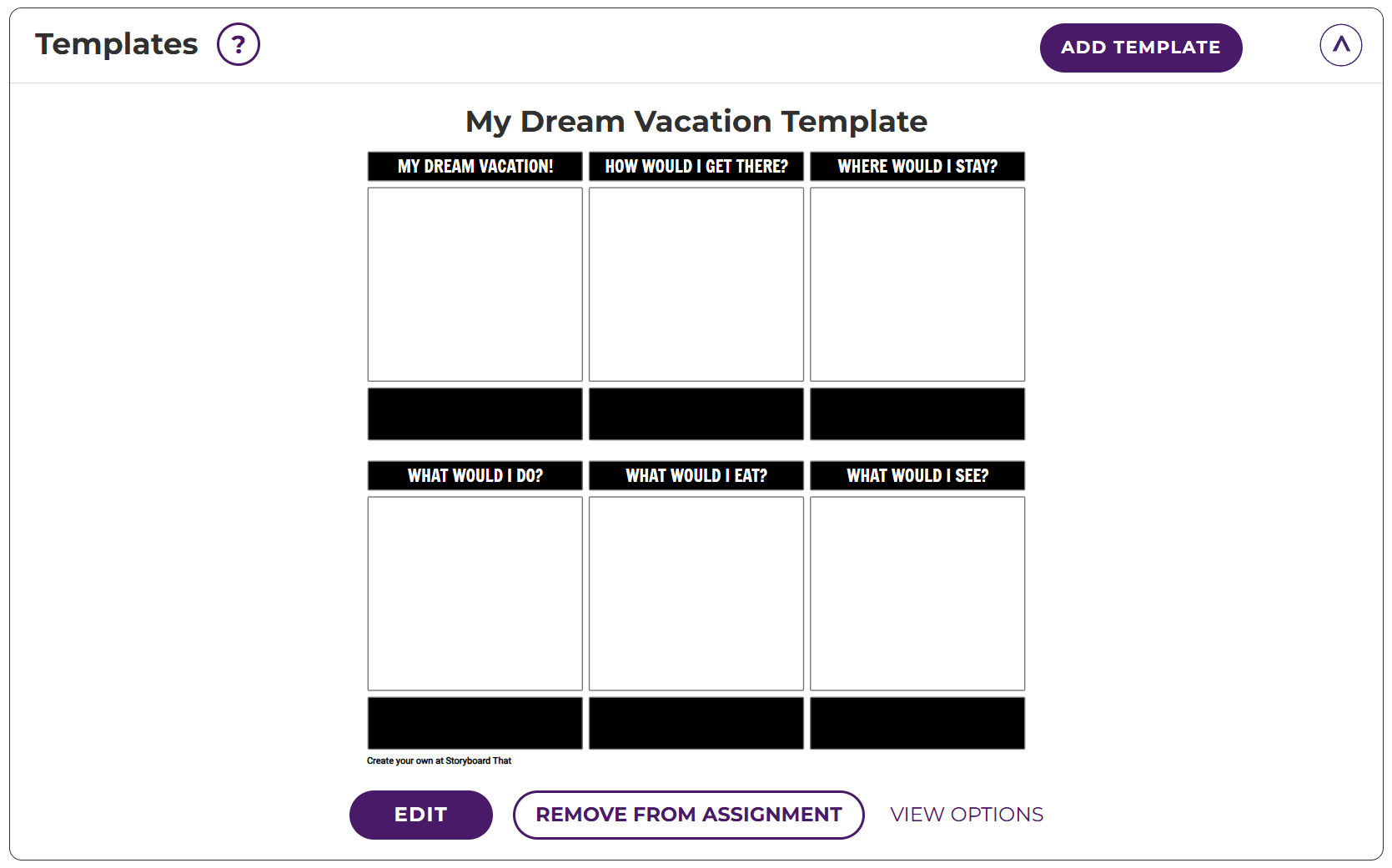 Select a storyboard for students to start from. You can add more than one template to give students options or for differentiation.
