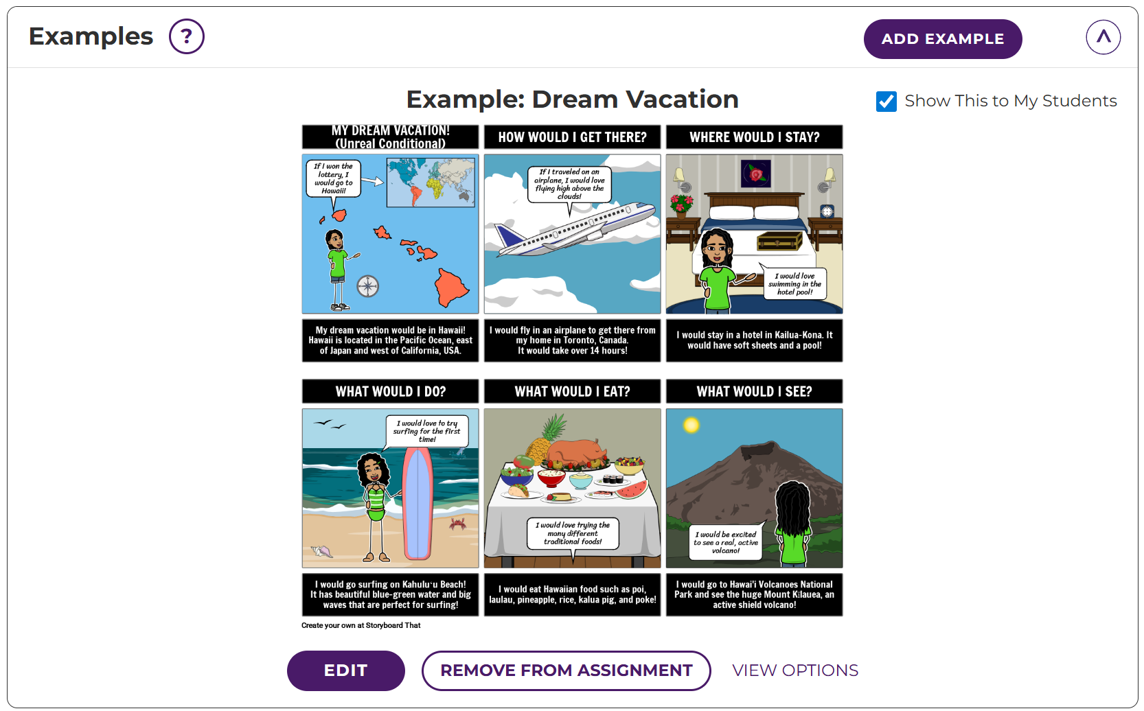 Assignments can be lessons, projects, or activities on Storyboard That, complete with templates and instructions, that students complete.