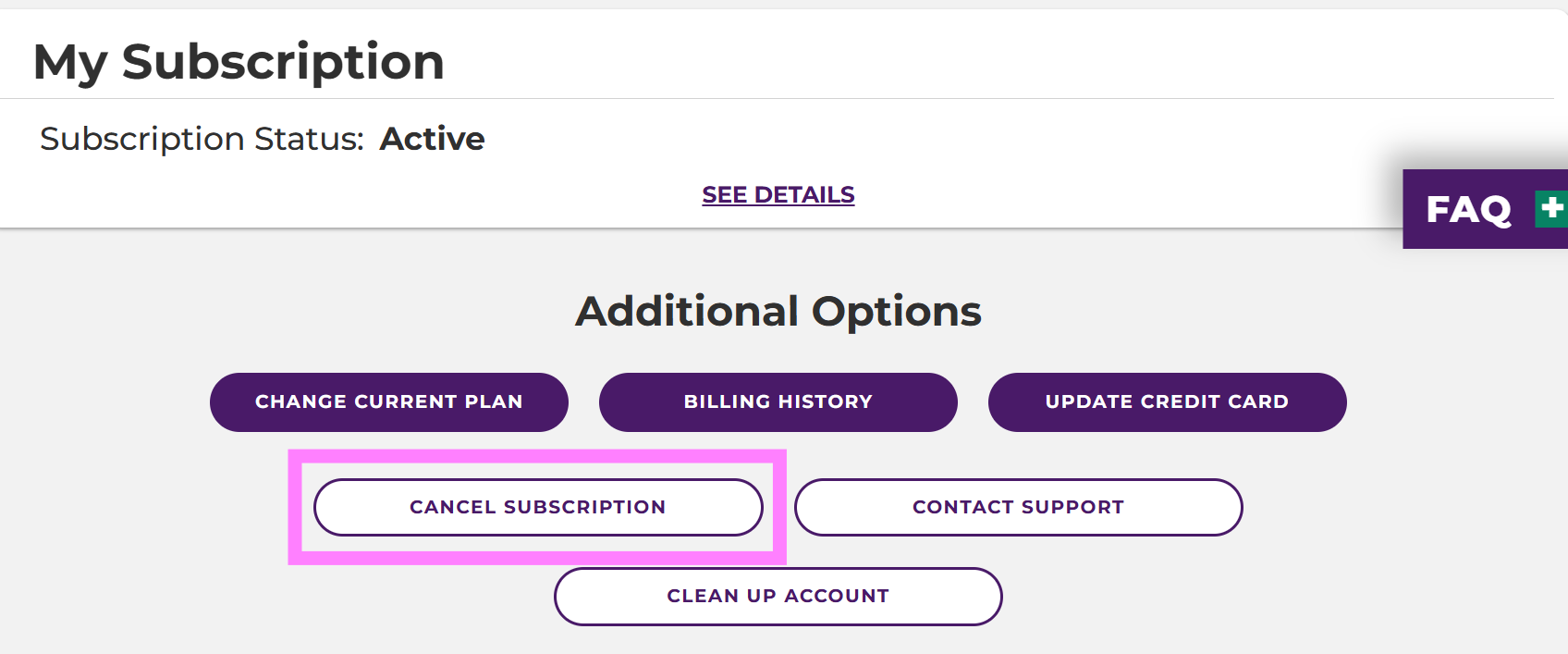 - Tell us why you've decided to cancel, then click Cancel Subscription.