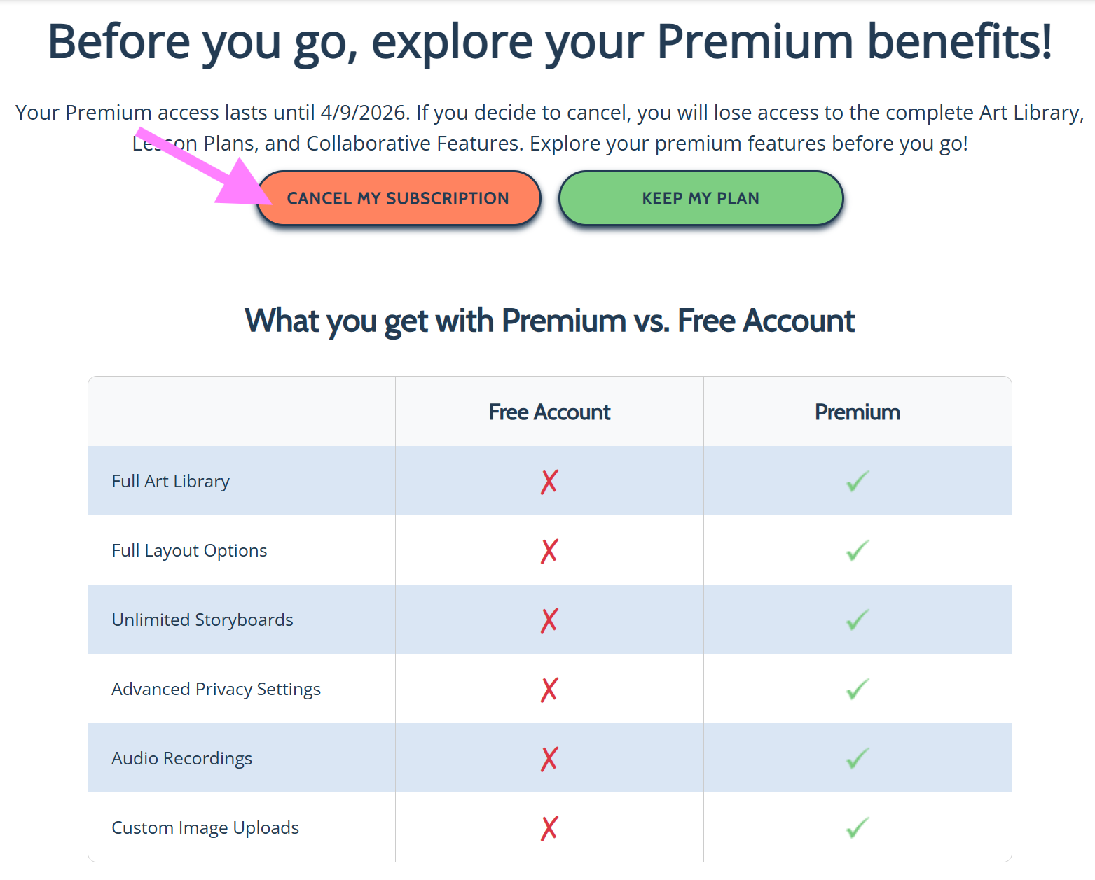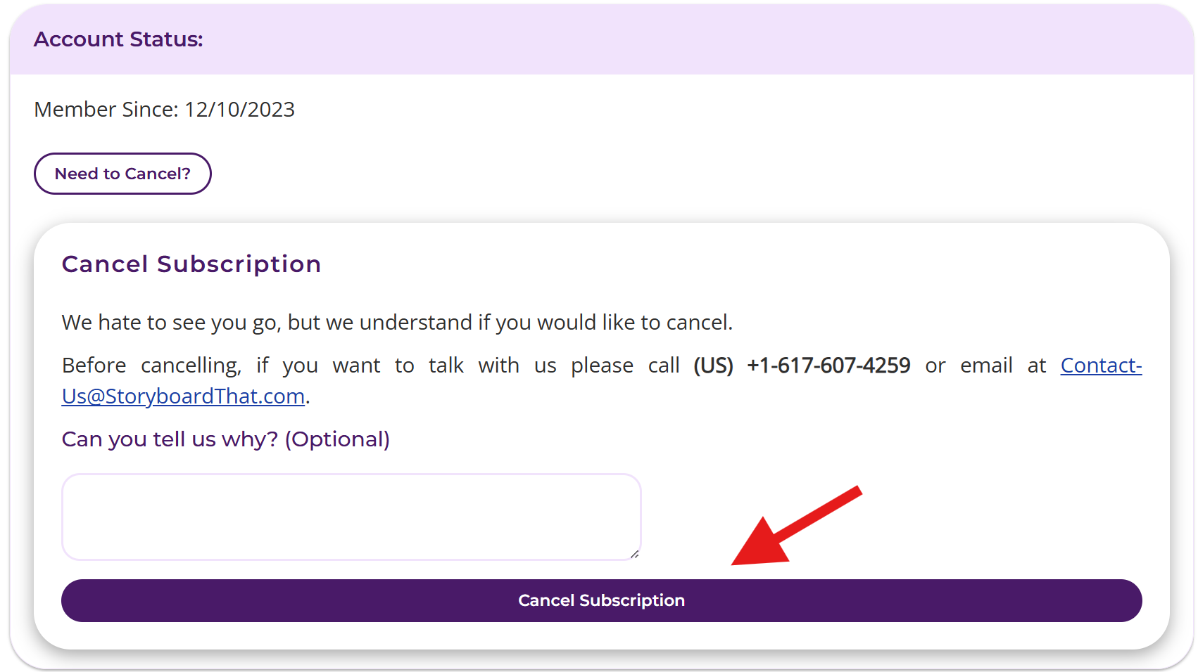 If you have any questions about how to cancel your subscription or need help with the cancellation process, contact us at support@storyboardthat.com!