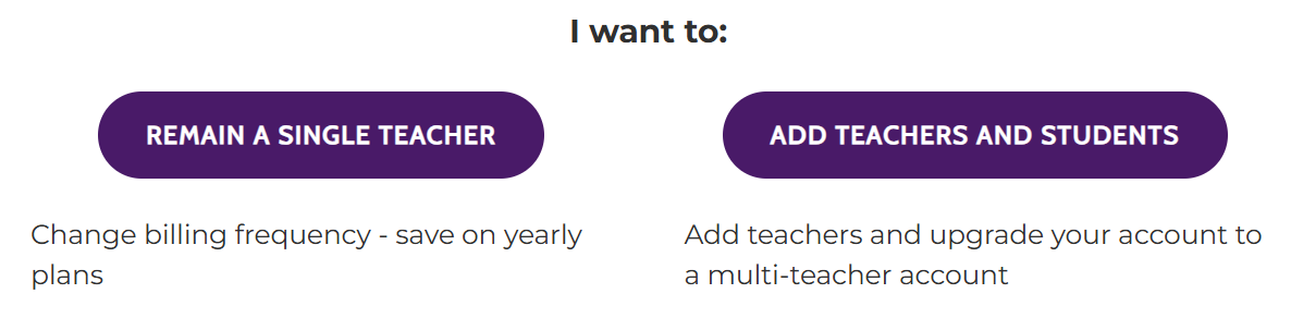 - Select the type of plan you would like (single teacher or add more teachers)