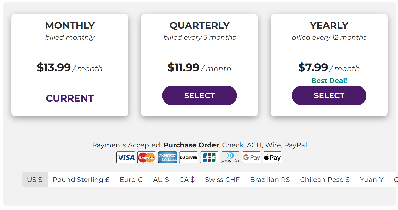 - Choose the plan you would like to continue with