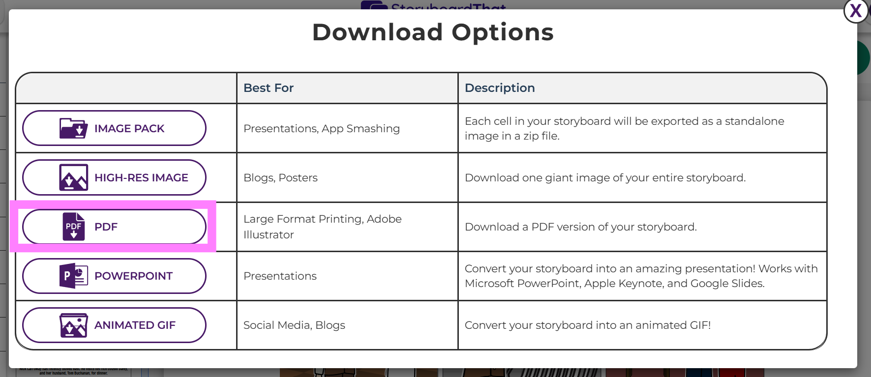 Learn how to download your storyboard as a PDF!