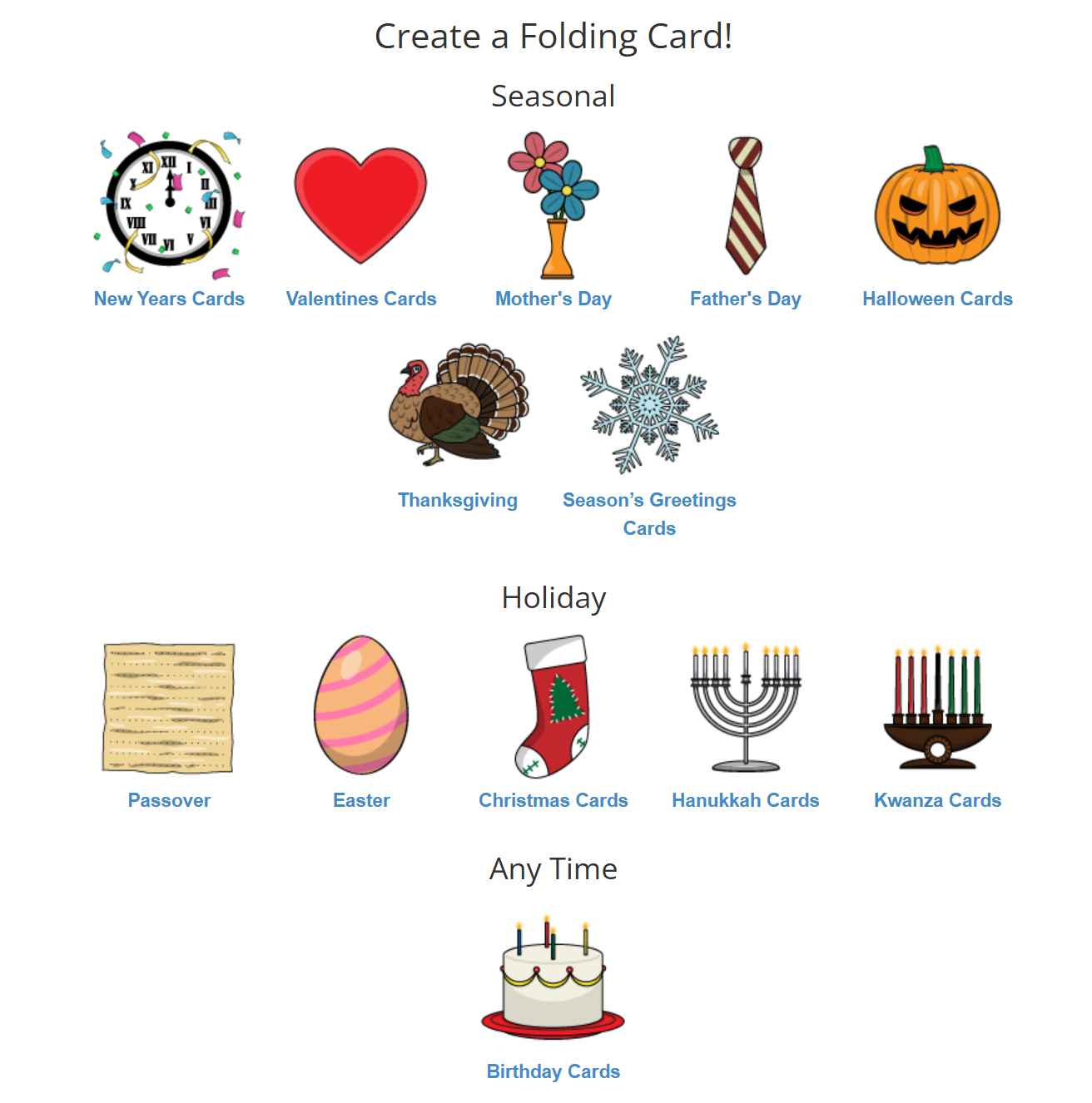 - Click "Make a Folding Card" and then click the holiday you wish. The right inside page is a pre-written message that you select at this step. Choose the artwork and message that works best for you!