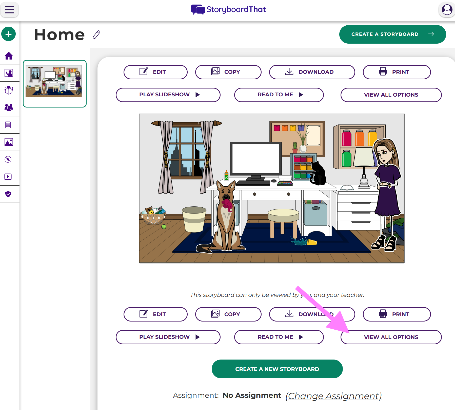 - Click on "More Options" of your storyboard, or, if you are in the Creator, click "Save and Exit" and you will see this view of your storyboard below.