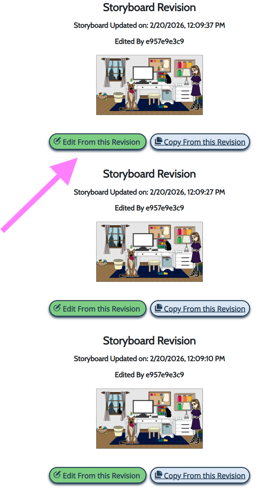 - Now you can see all of the previous versions of your storyboard!