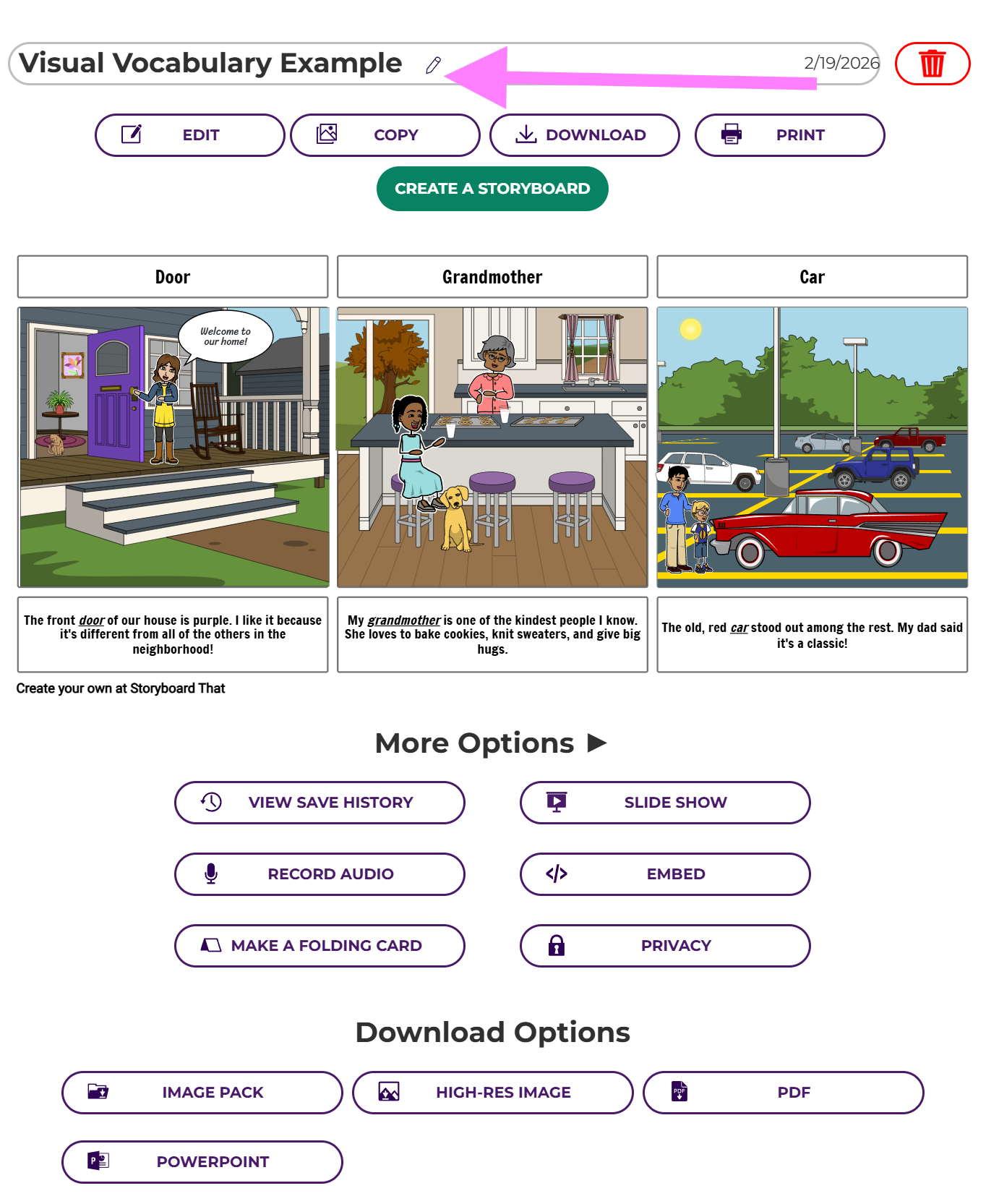 Learn how to edit the title (and description!) of your storyboard after you create it!