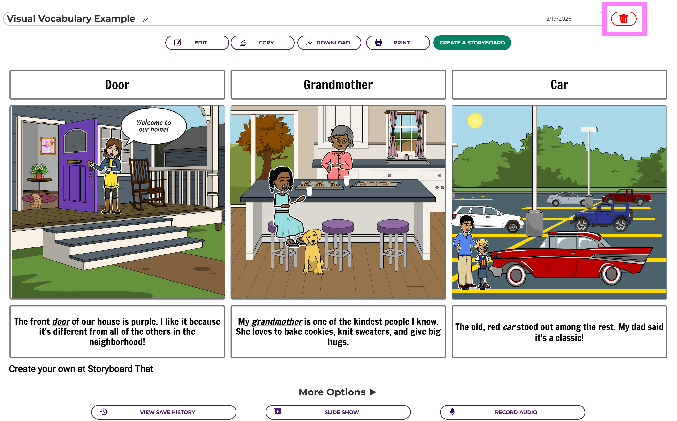- View the storyboard you wish to delete. (You may need to click View Details)