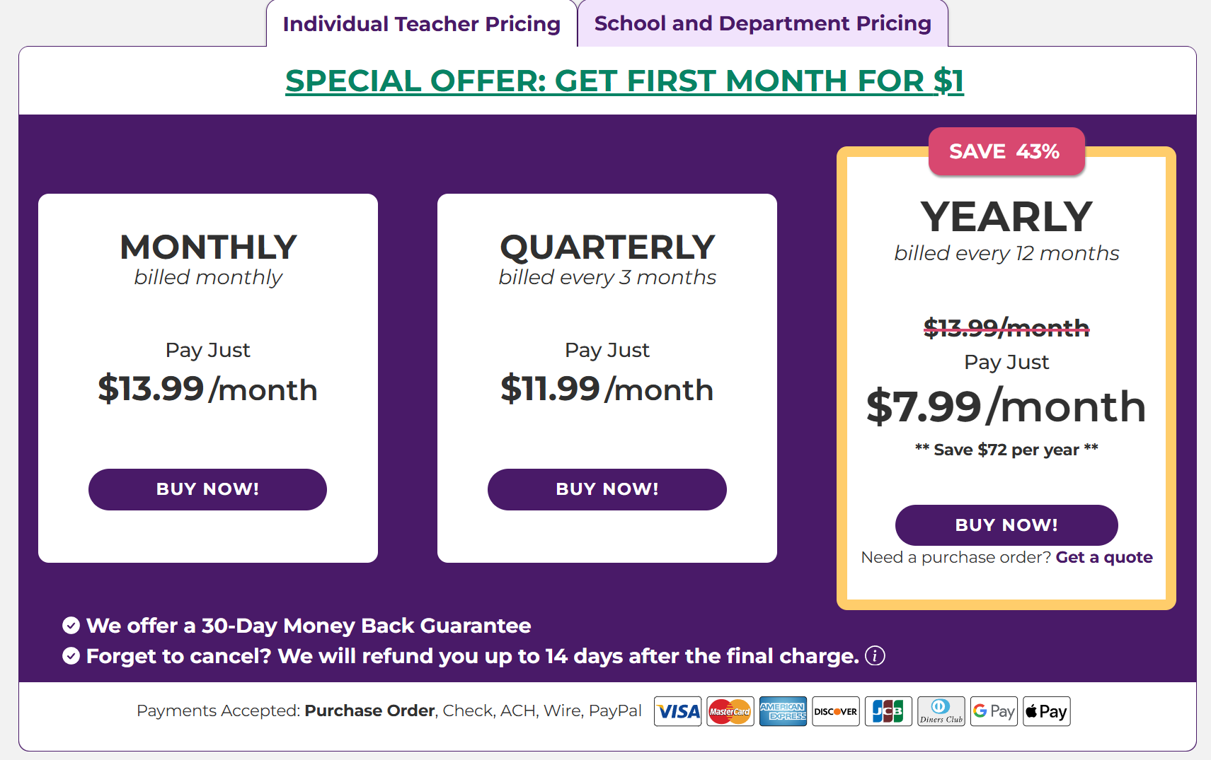 For our Multi-Teacher options, you can choose to purchase online or request a quote.