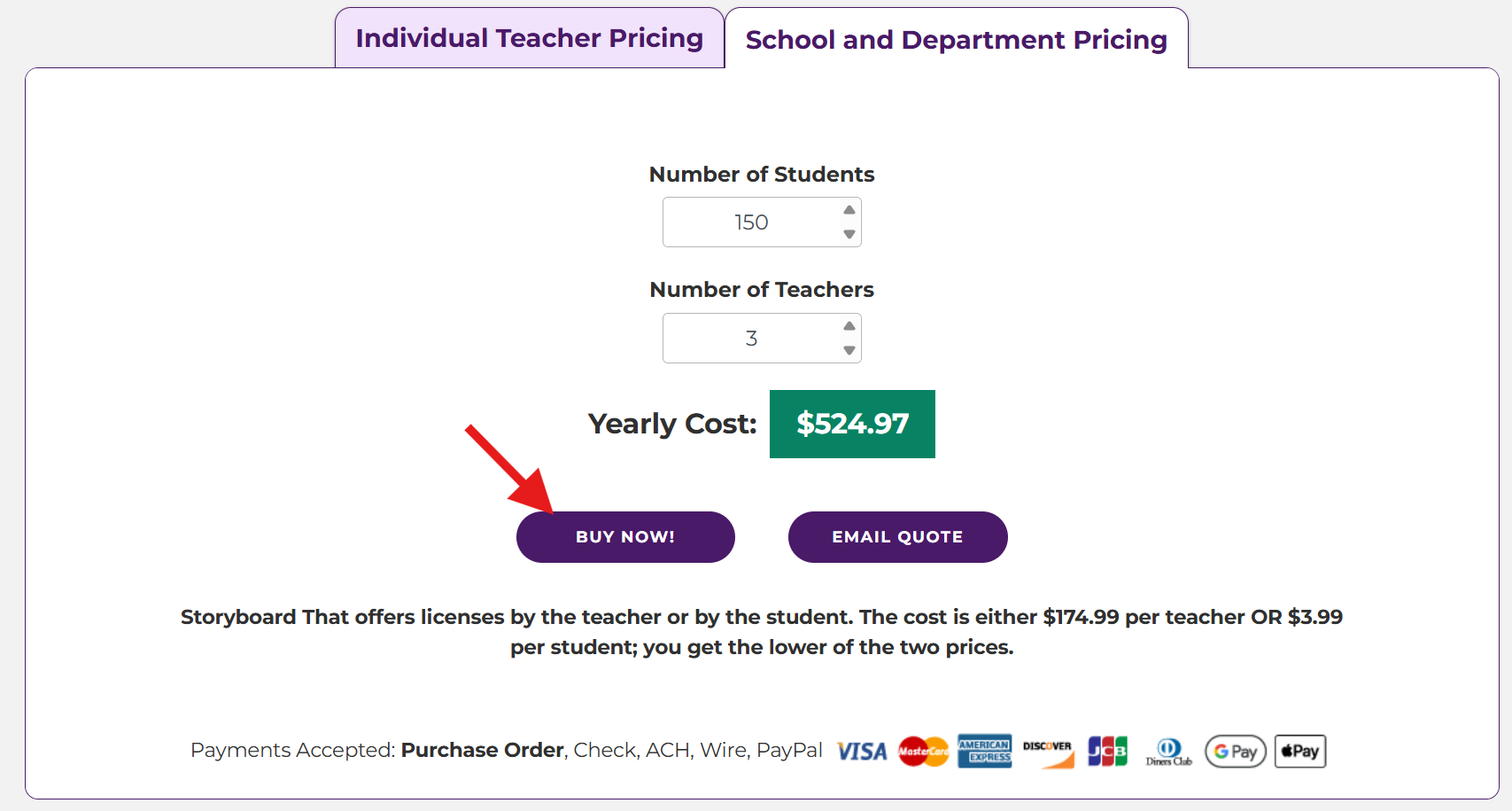 Have a quote emailed to you automatically, or send in a quote request to orders@storyboardthat.com.