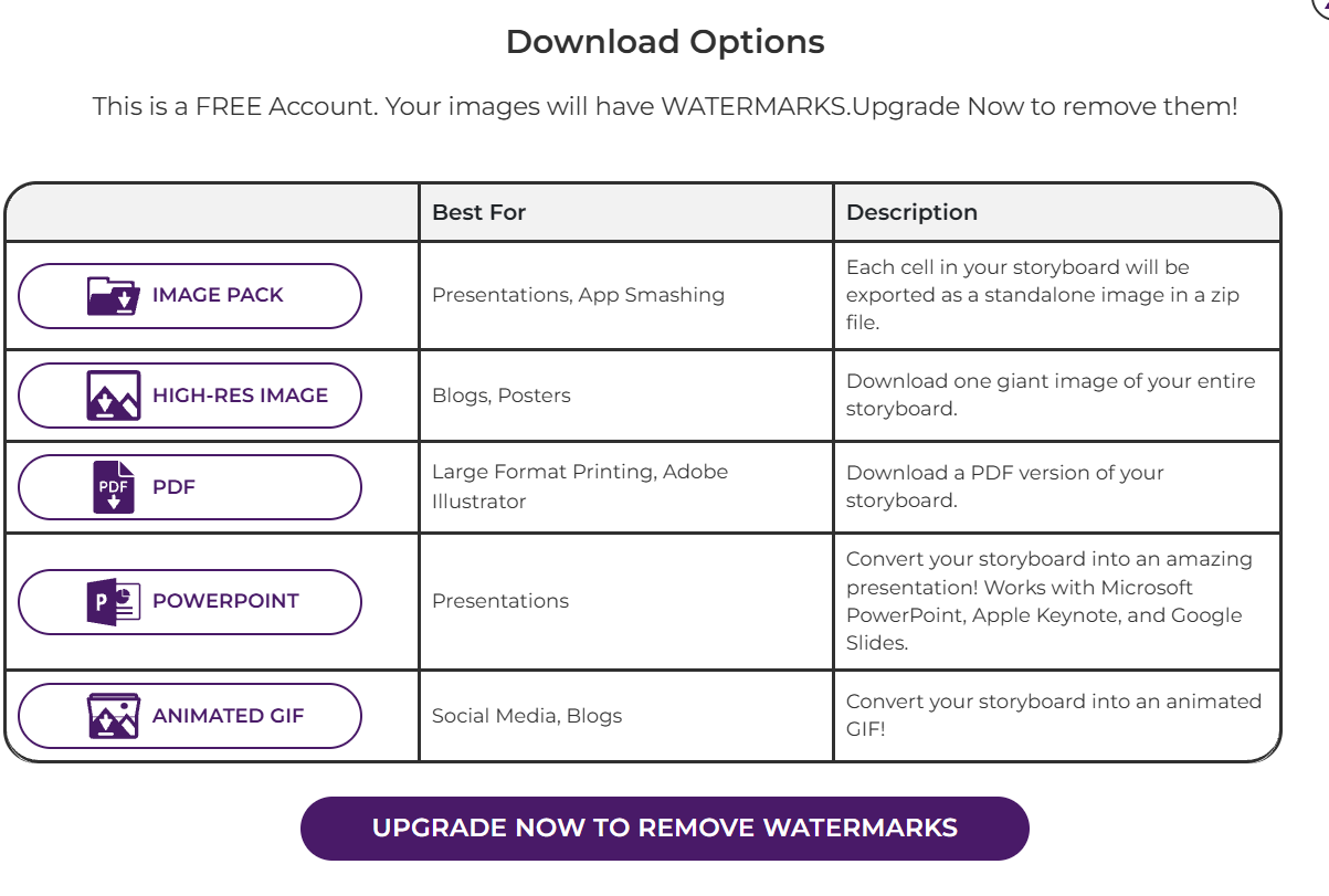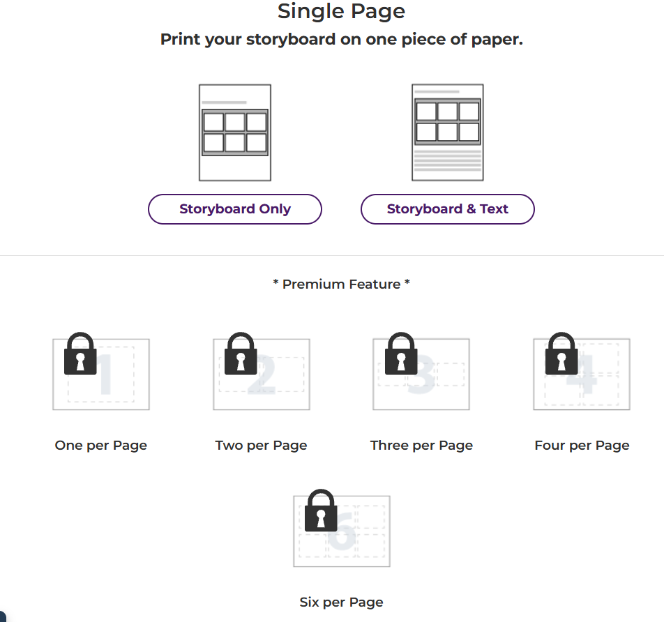 Premium accounts include unlimited storyboards, privacy settings, and more. The free version only allows two storyboards per week.