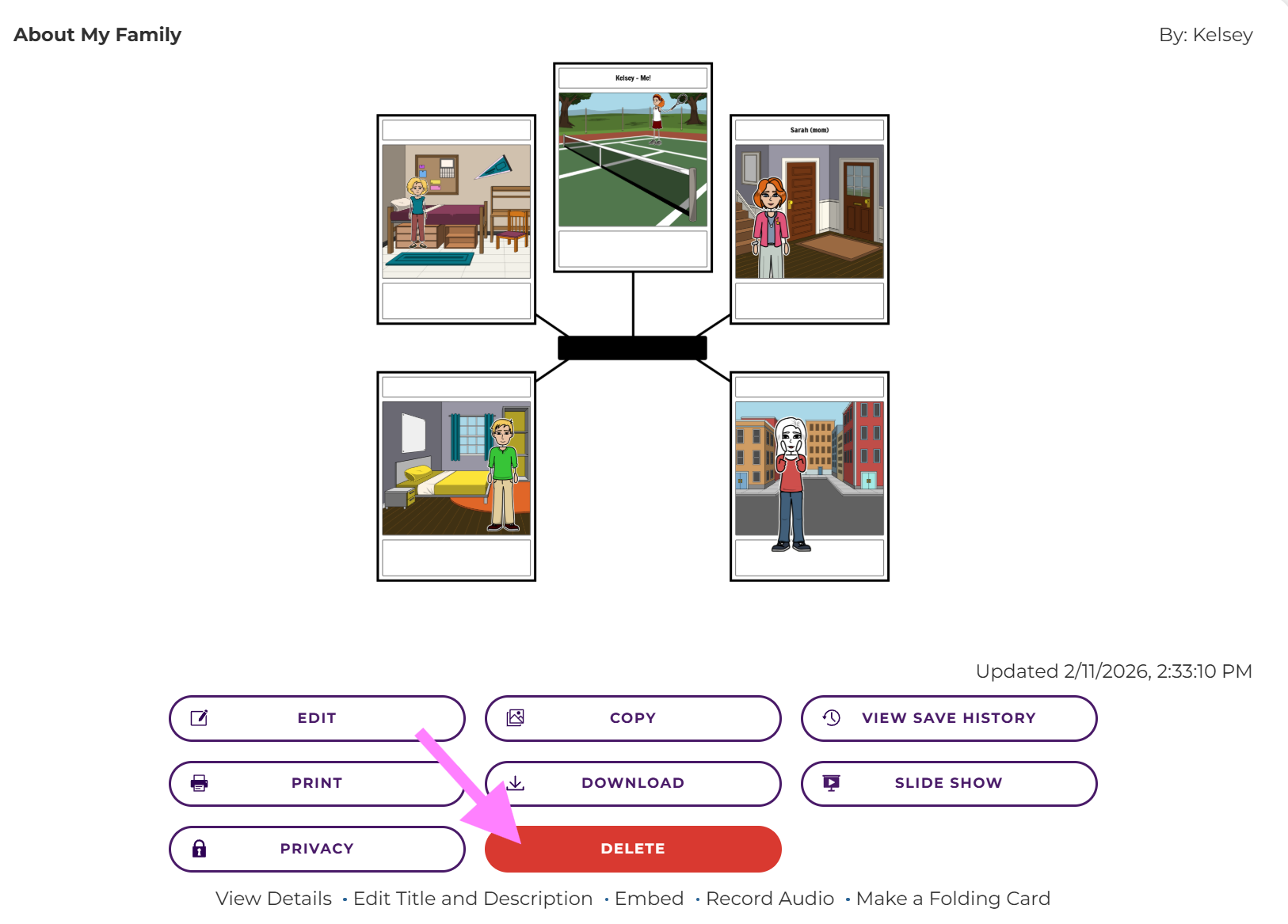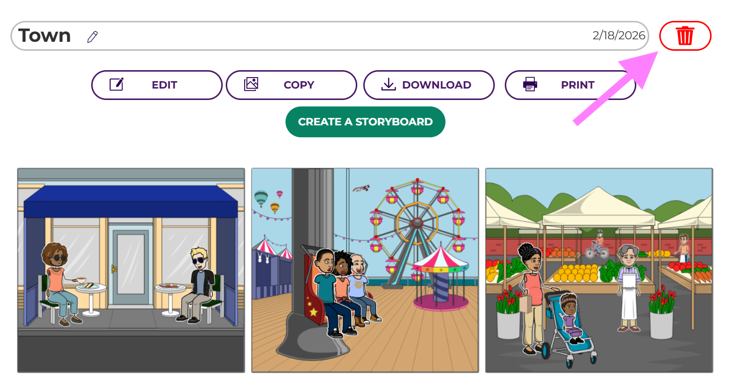 - Click on the Storyboard you would like to delete