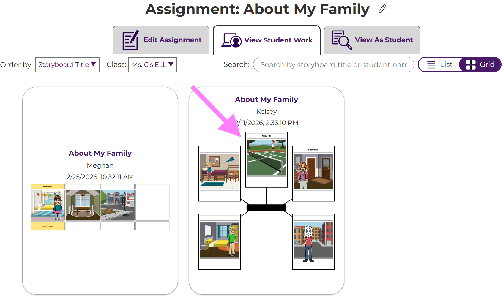 - Click on the student you would like to see