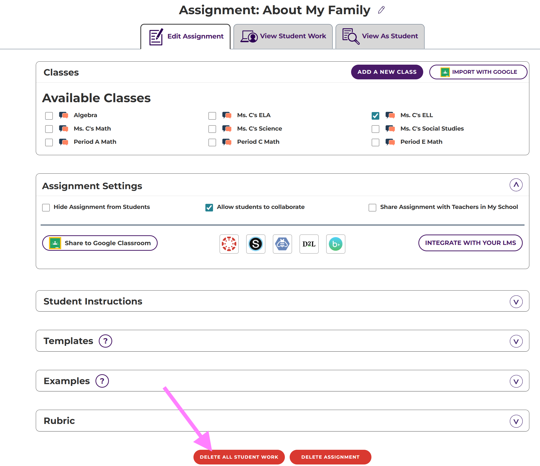 - Click Delete All Student Work