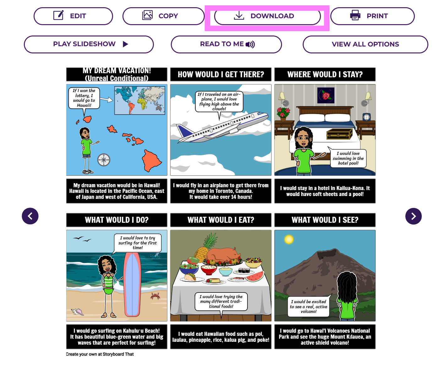 Download your storyboard to share with others in a variety of ways.
