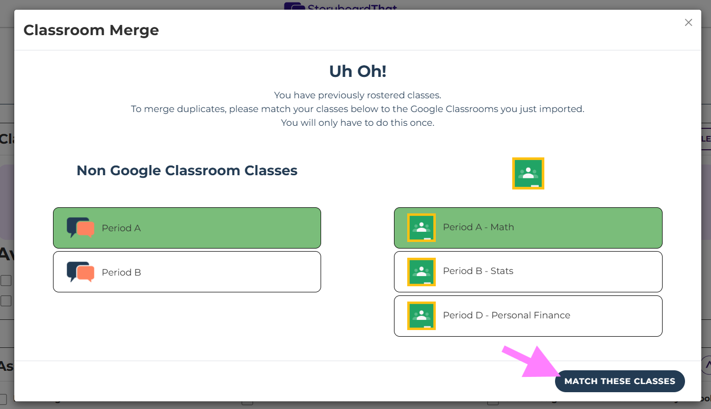 Match the classes you would like and click match these classes.