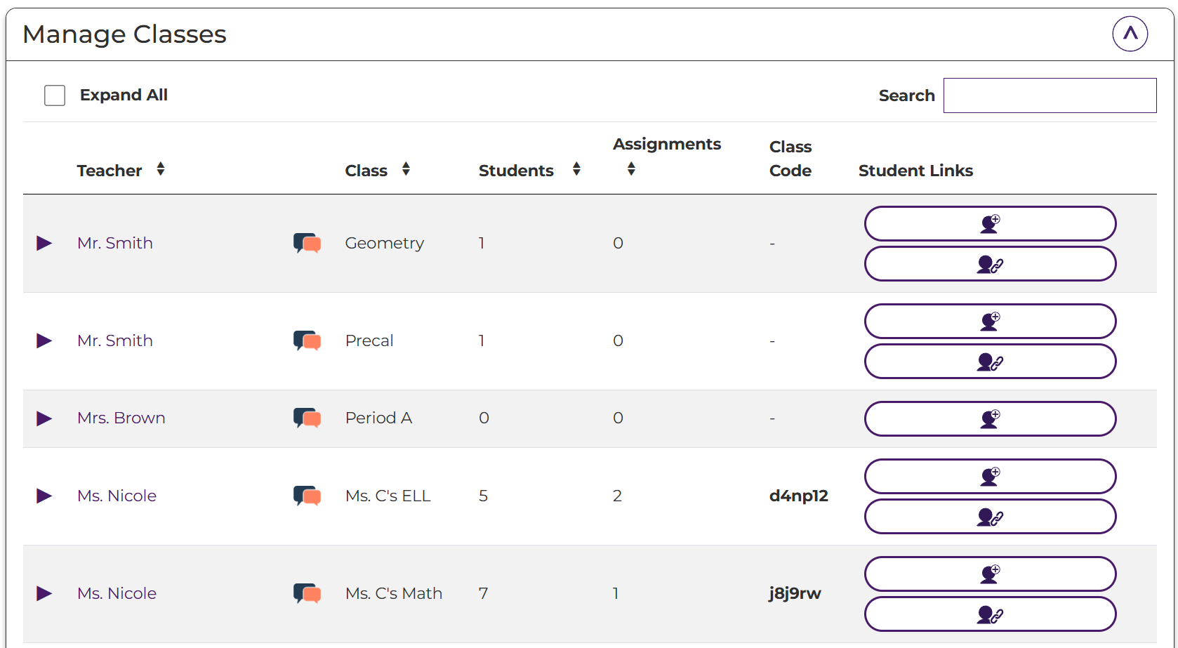 View and Manage Classes