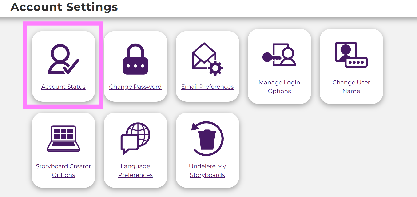 - Click Account Status under Account Settings on your Dashboard