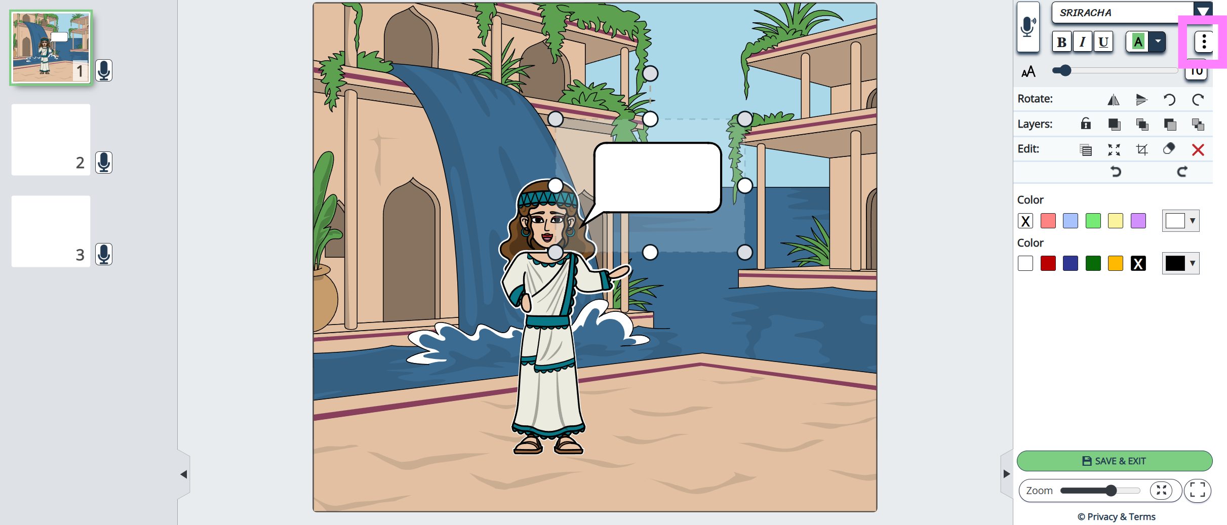 - Select your Textable or Speech Bubble, and click the three dots shown below